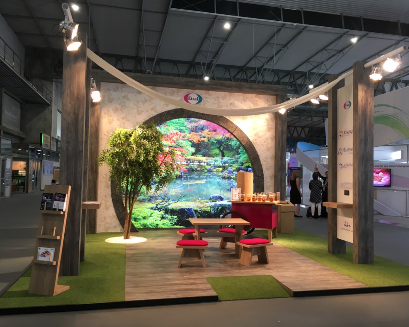 • A group of people are standing in a room with a sign that says smashing trade sales.